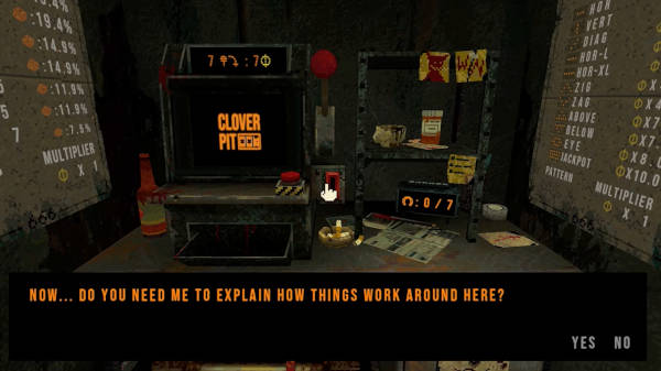 CloverPit es la última genialidad en juegos de terror, basado en una misión muy simple: ganar monedas en una máquina tragaperras (o tragamonedas) para poder saldar una deuda mientras vives la angustia de estar atrapado en una habitación inmunda.