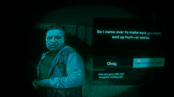 Tendrás el dilema moral de dejar entrar o no al personaje, por lo que será muy importante poder averiguar todo lo que puedas de él. Si impides el paso a un inocente lo estarás enviando a la muerte, además de perder a un posible colaborador.